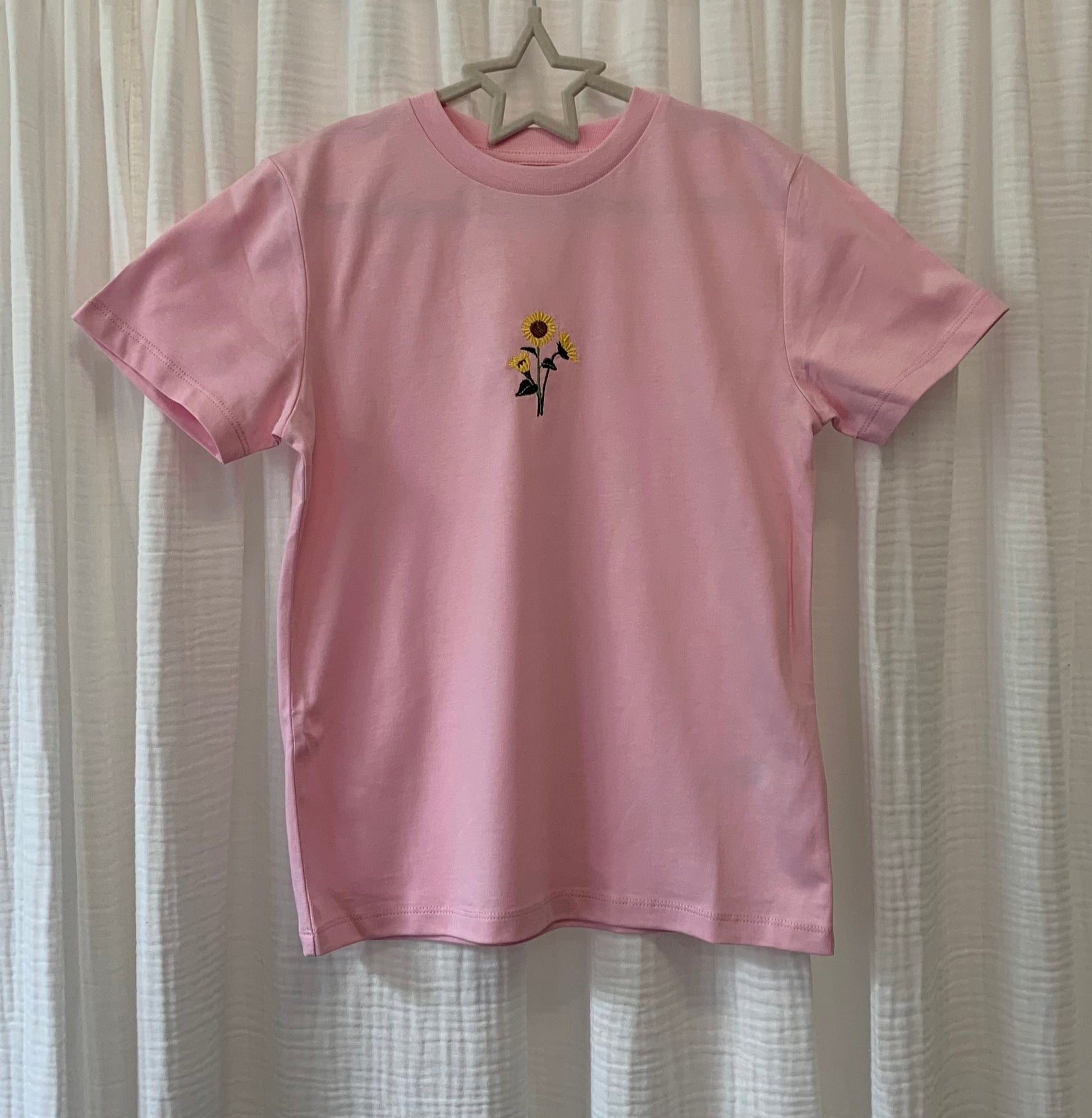 Machine embroidered sunflower bunch on a childrens unisex t-shirt.